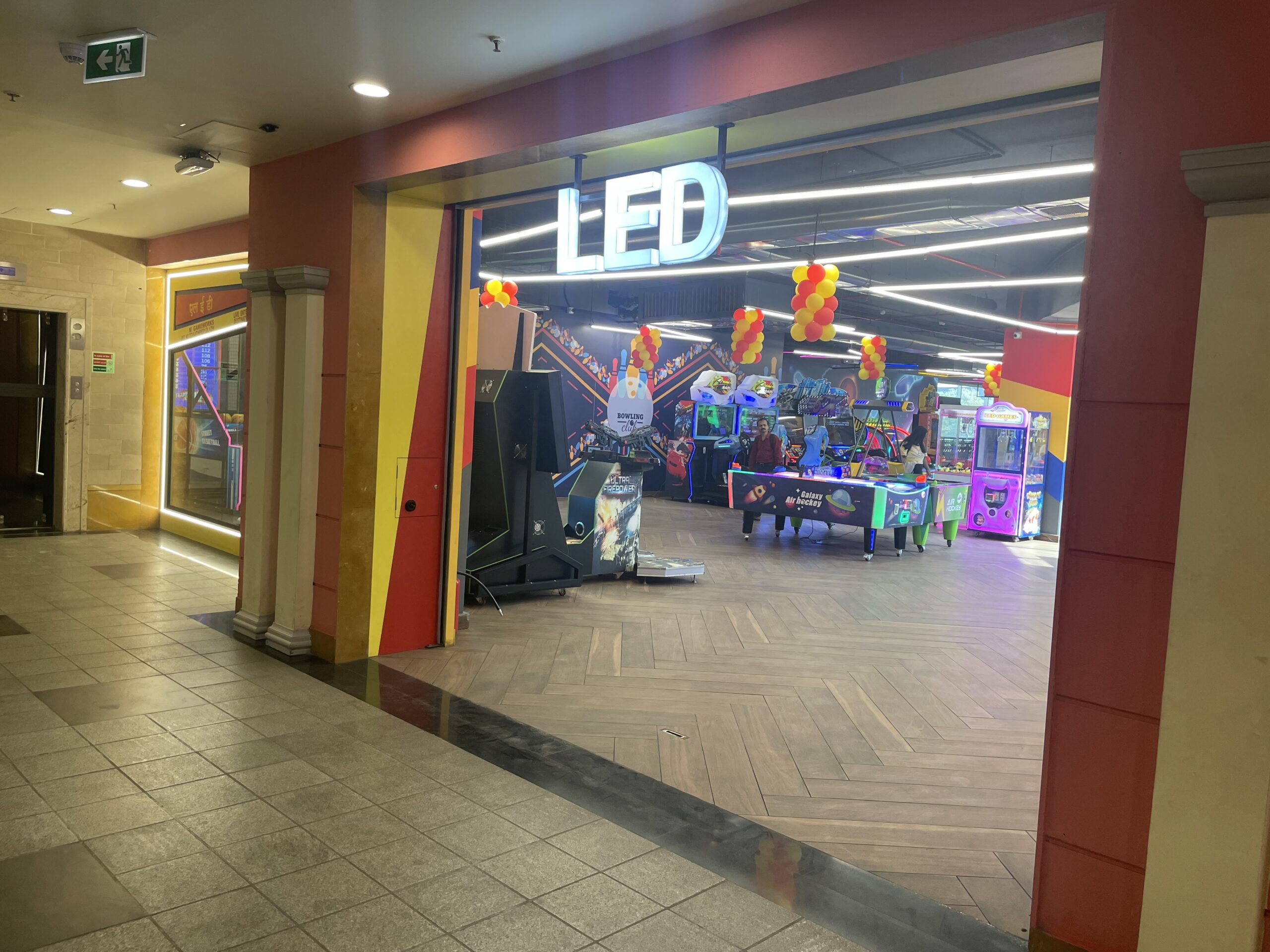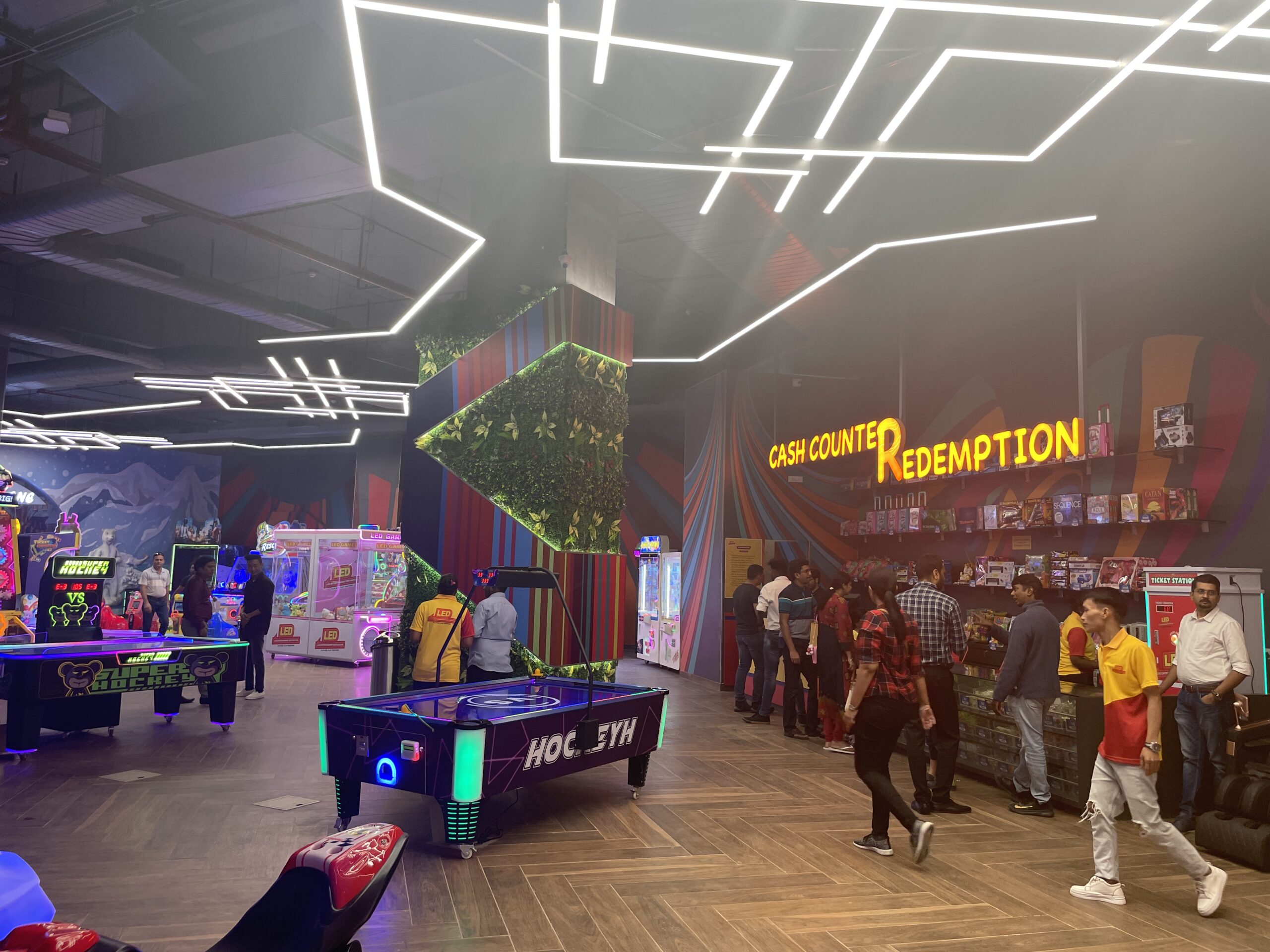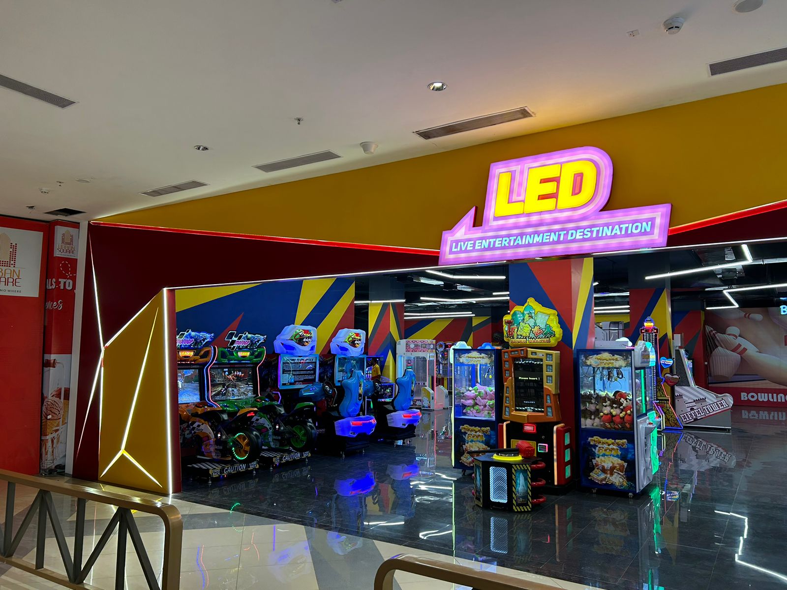A lively gaming destination brought to life through striking LED illumination and modern spatial design. The environment transitions between interactive play zones and radiant lounge areas, evoking a seamless experience of energy, vibrancy, and engagement.
