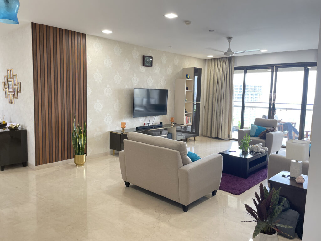 A modern, sunlit apartment living space with elegant interiors and serene aesthetics.Features include open layouts, soft-toned furnishings, vibrant accents, and lush indoor greenery for a refined urban lifestyle.